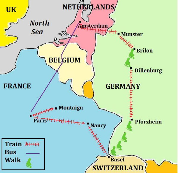 In the spring of 2015 I returned to Europe to see my German grandfathers grave for the first time, visit relatives in Munster, Germany and walk two longer distance hiking trails in Germany. I flew into Paris on April 19, 2015.