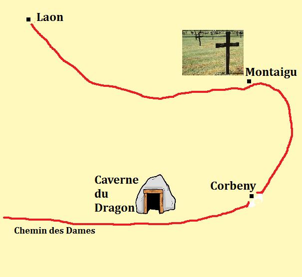 A few years before, in my mothers keepsakes, I found a number of old German photos and the death certificate of my mothers German father, Bernhard Leusing. Though the death certificate shows he was buried in Corbeny, a small french village, it was unlikely that he would still be buried there. In late 2013 I found the location of his grave on the german website www.volksbund.de. His grave is located at german military cemetery Montaigu I, in block 2, grave #489. Montaigu I is near the french village of Montaigu, not far from Corbeny and close to Laon.