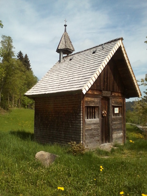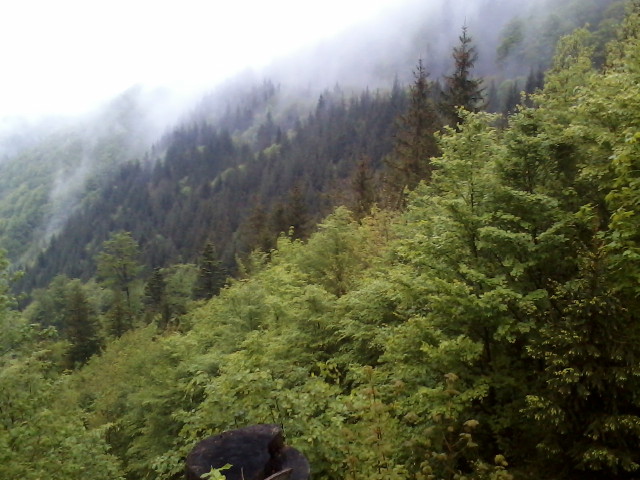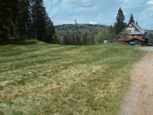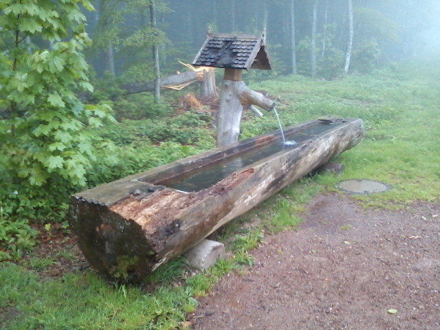 May 14, 2015 It was a chilly, wet, foggy morning. I had a schnitzel lunch at Weibenbachsultei. Eventually I got to Schwellen Hut. Was a steady rain all night.