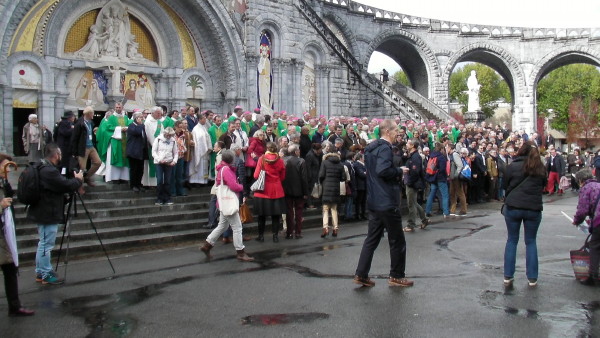 Crowd after mass at Lourdes