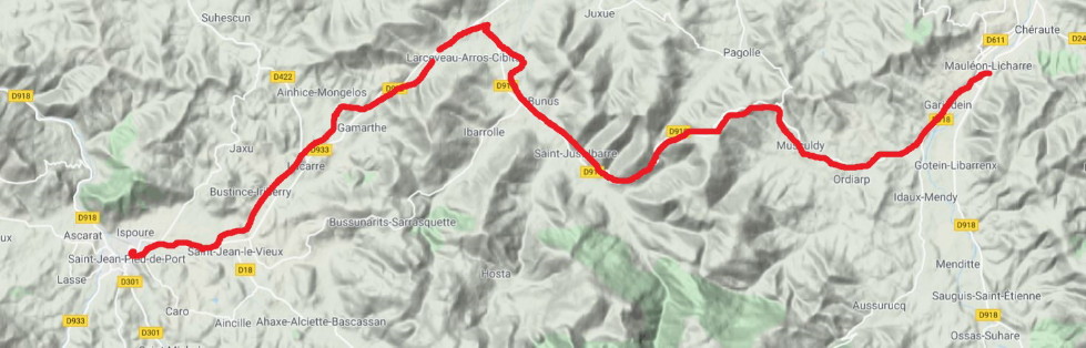 November 11, 2019 I left Maaleon at 7:30 AM and it was not raining. I got to Ordiarp and had a coffee in the bar. The bartender told me he used to work in New York and had been to the Sturgis rally. He urged me to hurry to St Just Ibarre as rain was coming in the afternoon.