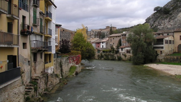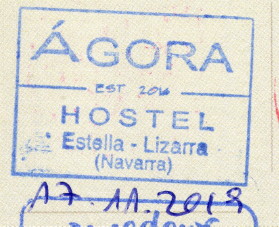 It only sprinkled a little bit. I was looking for a place to stop for a coffee, but choices were limited on Sunday. After 18 km I found a little bakery that had coffee in Villatuerta. Soon I got to Estella and checked into hostel.