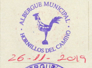 November 26, 2019 I left the pension a little before 8 AM. It was drizzling a little but not cold. Later there was rain and I was happy to get a coffee in Tardajos. Soon after I left I met a number of other pilgrims and one was Nicholas from Argentina. We had gone our separate ways in Arudy, France on November 8. I walked with him to Hornillas, catching up on our travel experiences.