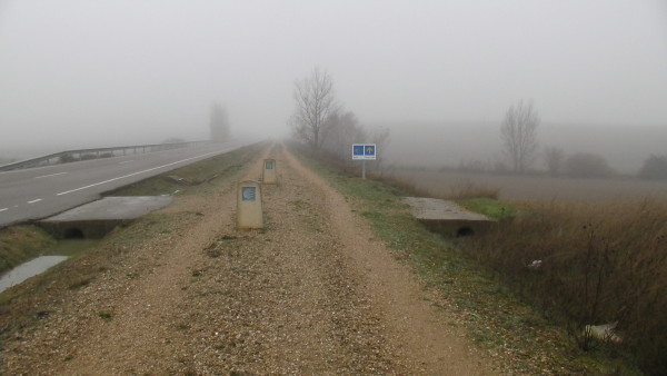 November 29, 2019 I had simple breakfast then got started just behind tall Korean woman, Yeah Eu. The walk was a straight level trail next to a highway and very uneventful.