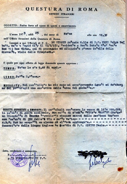 Mar 25, 1979 I went to the Sunday flea market at the Porta Portese with a German girl and an Italian hosteler. In the busy market crowd 3 gypsy children, posing as beggars, stole my wallet and travelers checks from my zipped jacket pocket. Gone was $90 cash, Mastercharge and Visa cards, all ID and $350 in travelers checks. I had 400 lire (50 cents) left in my pocket. My passport was not taken, as it was at the hostel.