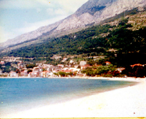 May 2, 1979 In the morning the Sarajevo man who bought the bike, served me French bread for breakfast. I organized my two bike packs into a very cumbersome backpack and took the bus to Baska Voda, a favorite spot for Germans. I stayed in one of several cheap cabins on the beach. The beach was good and the town pleasant despite the heavy tourism.