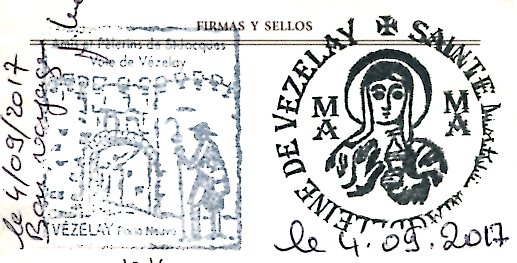 After the train to Auxerre and then two buses, I was in Vezelay before noon. On the bus, I met a French man also headed to Vezelay to walk a pilgrim route. He was on a pilgrimage to Assisi, Italy. I stayed at the Center St Madeleine, along with 17 others. Some were taking the north or south Vezelay route, and a few for Assisi.