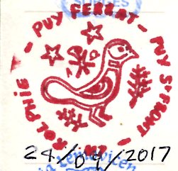 September 24, 2017 The route out of Perigueux went thru suburbs and seemed longer than perhaps it actually was. I walked for awhile with Renee and we stopped for coffee in late morning at Gravelle. I continued on to St Astier and the final few kilometers of todays 25 km (545 km total) to the 15th century Chateau Puyferrat.