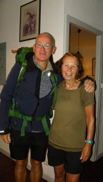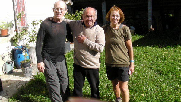 October 8, 2017 Louise &I left before 8 AM. It was cold in the morning, but a nice sunny day. As we were walking in the country, an older man asked us if we would like some coffee. We said yes and Joseph invited us in to his house. He was being visited by a social worker who prepared and delivered meals to senior citizens. He made us instant coffee and showed us postcards of other pilgrims he had also shared kindness with.