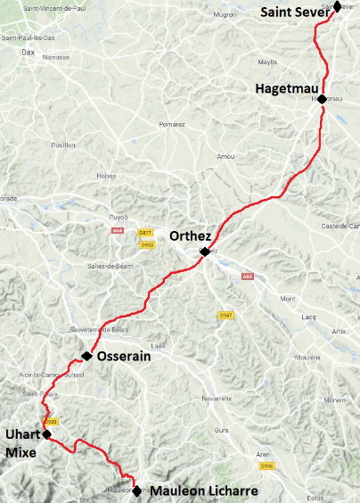 October 7, 2017 It was a beautiful day for a walk and the 15 km (803 km total) was across nice country. We had to go to the west side of Hagetmau to get the code for the refuge, and then walk to the other side of the town to the refuge. Louise and I washed clothes, but we chose a very long wash cycle that took hours.