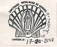 October 16, 2017 I left at 6:45 AM and walked about an hour in the dark on hilly, forest paths. After reaching Lestelle Betharram, the route followed the river and was mostly flat. The last few kilometers of the 20 km day (997 km total) was on a leaf covered forest trail. Shortly before Lourdes I met a German couple who were asking about the trail I had just walked. They were tourists on a day hike.