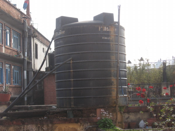 Photo: Kathmandu roof with typical water container