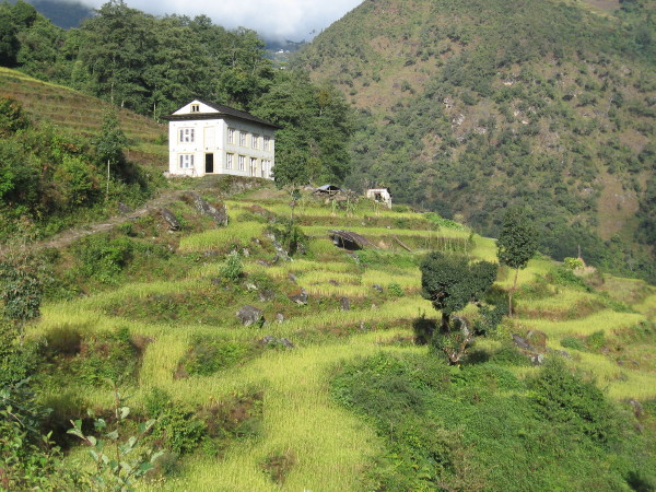 October 30, 2008 Though it rained overnight, today was a beautiful day. As I passed through Jubhing, many people were dancing. Got to Bupsa about 12:30 PM and stayed at the Yellow Top Lodge. Annett & Lutz showed up soon thereafter. We had dinner together.
