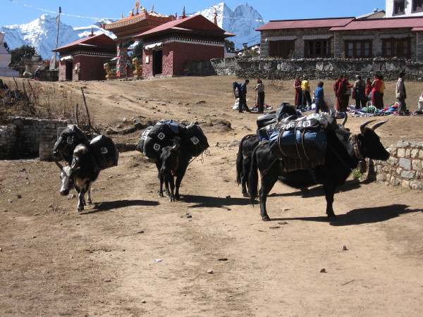 Namche street shops had many of the same tourist offerings as found in Thamel, Kathmandu. Most goods, fuel, etc were carried by porters from Jiri to Namche following the same route as I had taken over the last 7 days. Porters carried loads of 100+ pounds.