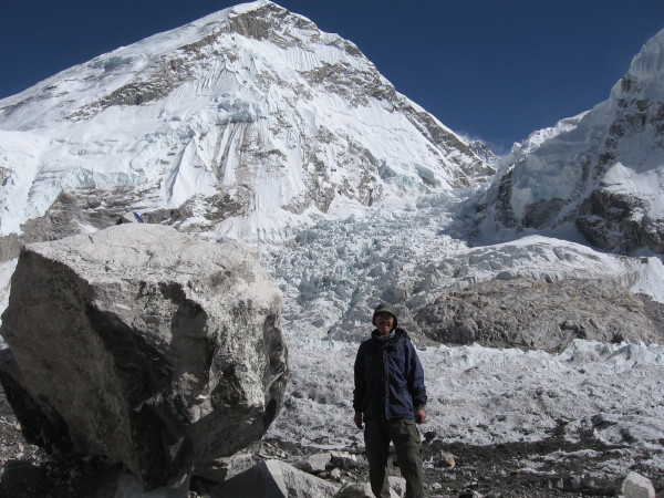 Photo: Ralph at Everest Base Camp, Khumba Ice Fall behind