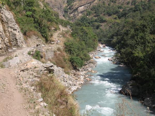 November 18, 2008 The trail, unlike the Everest trek, was not as challenging for steep up and down sections. I had lunch in Syange. Got to Chamje about 2 PM. Stayed at the pleasant Tibet Guest House.