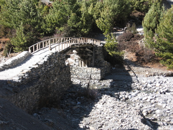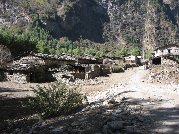 November 20, 2008 The trail to Chame was a gradual altitude increase. I had lunch in Bhratang. A little further on in Dhukure there were many groups of tourists having lunch. Up until then I had not seen many tourists at all.