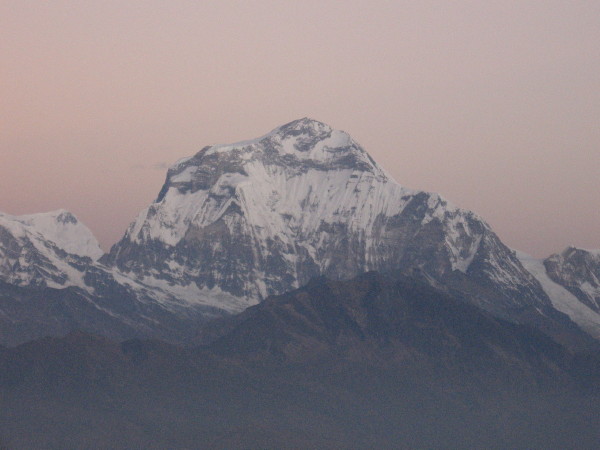 November 27, 2008 Got up at 5AM to walk up Poon Hill. It was a clear sky and cold for the dozens of tourists I joined for the one and 1/2 hour walk up to the top. After returning and having breakfast I left for Chhomrong.