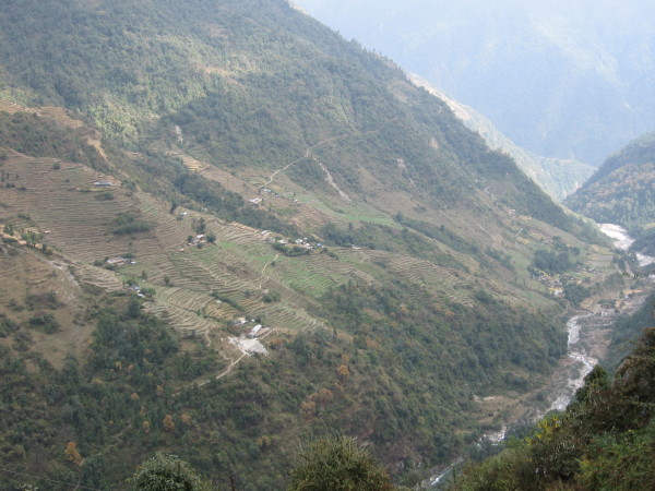 November 26, 2008 It was a short easy walk to Tatopani, known for hot springs. From there it was a 5 hour trek to Ghorepani, an altitude gain of about a mile. Checked into a hotel that had a workable internet connection and a warm dining room.