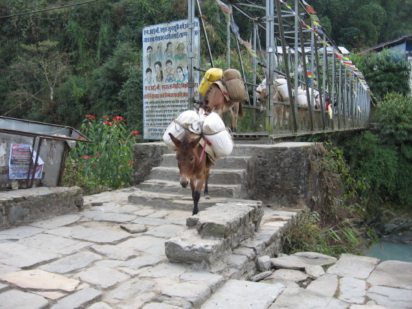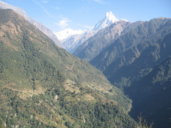 November 30, 2008 Got to Chhomrong about 11 AM, then headed down trail to New Bridge. I had wanted to go to Ghandruk, but eventually I realized I could take a more direct trail to Birethanti. I ended up staying at a lodge in Syauli Bazar.