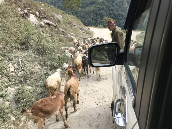 November 1, 2023 We left the hotel at 6:30 AM to get to airport for our 8 AM flight to Pokhara. The flight was less than 30 minutes. Our guide, Ram, and porters Kali and Ewass came to pick us up at 9:30 in a jeep with driver. It was almost a 3 hour drive to Jhinu, the start of the trek. The last hour + was on a rough mountain road.