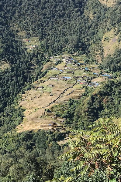 After lunch we continued onto Bamboo, the last portion a long descent down many more stone steps. Our lodge had a shared bathroom with a hot shower. We washed some clothes. Unfortunately soon after hanging the clothes on the line, the sun disappeared behing the mountain.