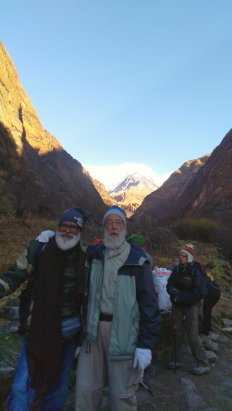 November 4, 2023 The trail followed a river much of the way and there was less vegetation as we gained altitude. There were many people coming and going, crowded at times. We got to Fish Tail Base Camp about 11 AM and had lunch. In the afternoon we rested, washed some clothes and relaxed.