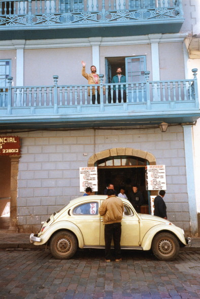 Later I bought a hat and sweater. We had a fried chicken and potato dinner and then went to a slide presentation by a Peruvian on the Qoullur-Rit'y festival. We had decided to go to the festival the next day.