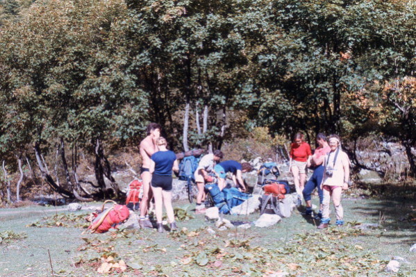 At 2:00 PM we started hiking the rocky mountain slope. Although it was steep, it was not dangerous. The snow got to be quite deep as we hiked higher. We met some of the other camp participants halfway up. They were headed for Nacra. Taya and I reached the top of the pass at 5:00 PM in a steady snowfall with drifts three feet deep. The others were not far behind except for Lonya and Susan. Lonya stayed with Susan who had more difficulty walking on a bad knee.