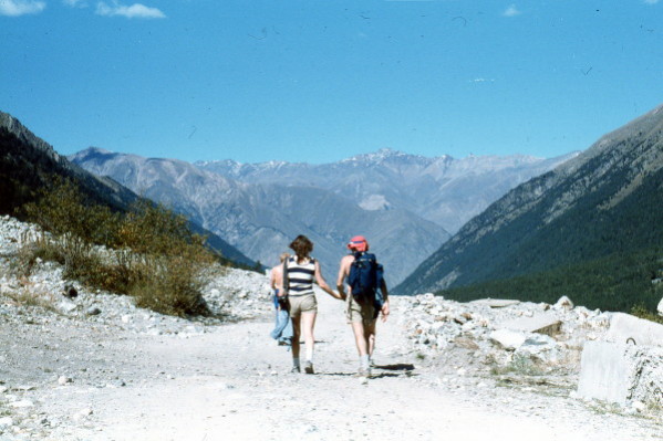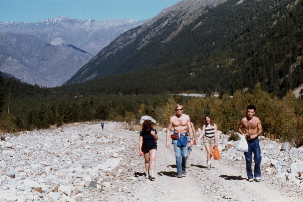 Sep 21, 1985 Several of us took a bus to the Adyr-Su Valley. We got off at a vehicle lift that was like a giant escalator. From there we hiked 3 hours up a dirt road to a mountaineering camp. The day was warm and sunny. The views of the mountains were spectacular. We got back to the hotel at 4:00 PM.