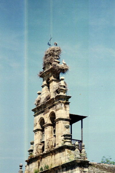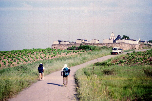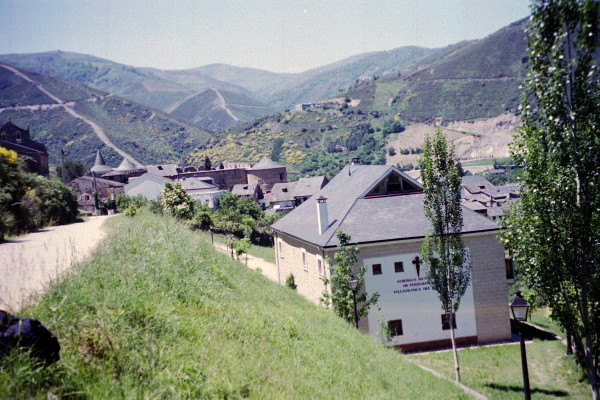 May 26, 2001 I was on the road at 6:30 AM. Ponferrado was a large town and took some time to walk through. The nicest section walking that day was the few villages after Ponferrado that I covered in the morning. In contrast, the afternoon walk was mostly on an asphalt road with little shade. I was very hot by the time I reached Villafranca del Bierzo. I went a few miles farther to Pereje, a small town. I had walked about 21 miles.