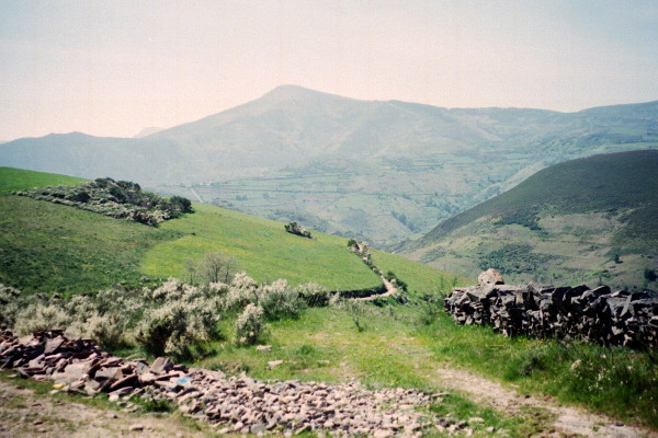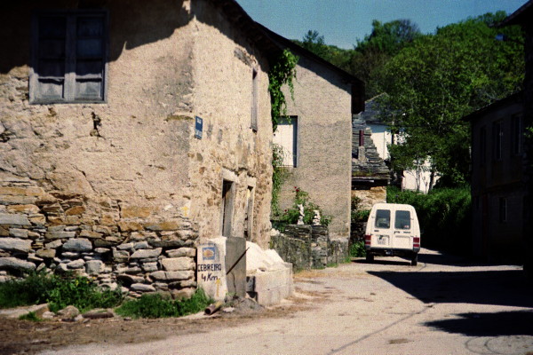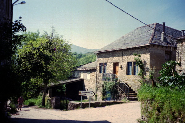 May 27, 2001 I left at 7:00 AM and stopped at Portelo for coffee and a croissant. While I was eating, the Puerto Rican from the refugio joined me. We walked together most of the rest of the day. We had a bocadilla in Cebreiro then walked on a few miles. I decided to stay at Alto de Poio, a roadside bar, that had a few bunks. Others were Yves and Jacqueline, an older French couple, and a French biker.