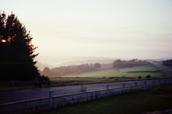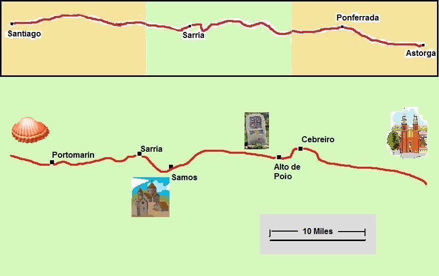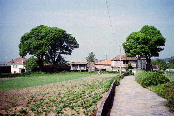 May 29, 2001 Feeling good, I got off to an early 5:30 AM start. Soon I had a choice of following the Camino or taking the alternate busy road to Sarria. I took the Camino, but unfortunately the yellow arrows led me to a river with a missing bridge. I tried to cross the river, but the opposite bank was too deep. In my attempt I heaved my backpack from the shallow middle of the stream to the opposite bank, but the pack fell back into the stream. At that point I gave up and walked back to the road also leading to Sarria.