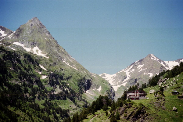June 20, 2001 From the hut to Benesque was an easy walk on a gravel road. I needed a rest so I found a room at a pension and ate a couple of cafe meals. I met 2 British walkers who were headed in the opposite direction, so we did a map trade.