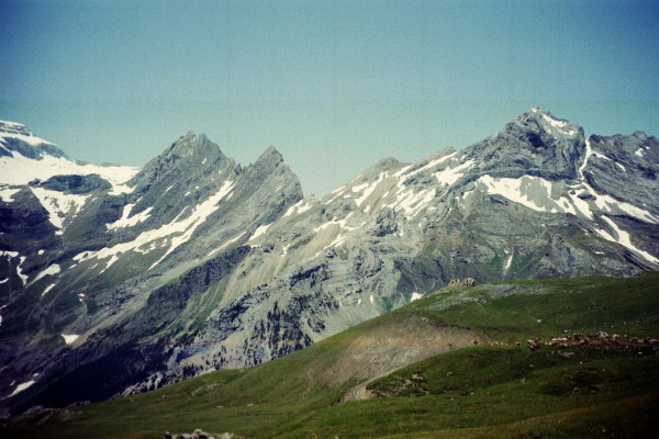 June 23, 2001 I bought a few groceries at a small grocery store in Parzan, then headed up to the Collada de Pietramula. The views of the Valle de Ordesa were excellent. At the Refugio de Pineta I asked about the steep trail that I planned on climbing tomorrow. They warned me that many large trees were down and that snow near the top required an ice ax and crampons. Since I had neither an ax or crampons, I decided to end my walk there. That night I enjoyed a communal meal at the refugio.