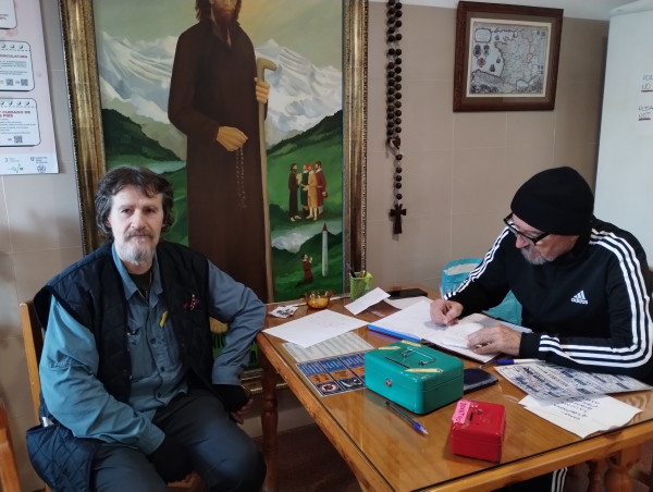 Our duties included opening the albergue up in the morning and closing it at night, cleaning the sleeping rooms, the kitchen and the bathrooms. In the afternoons and evenings we would work 2 shifts of 4 hours each registering the pilgrims as they arrived at the albergue. Pedro and I worked together signing pilgrims in and helping them with anything they needed.