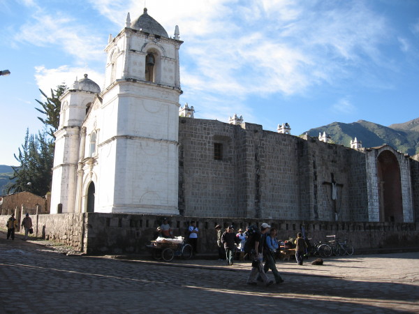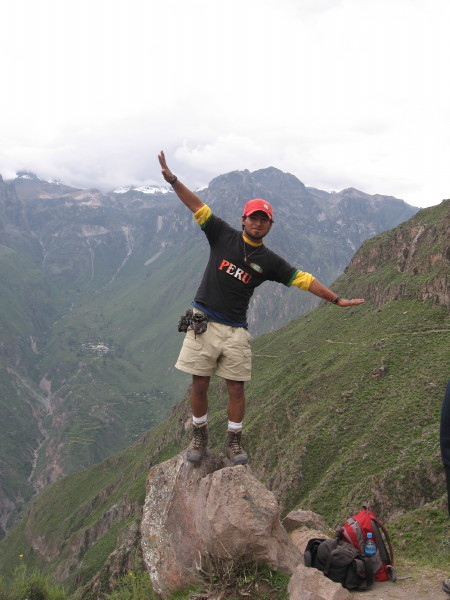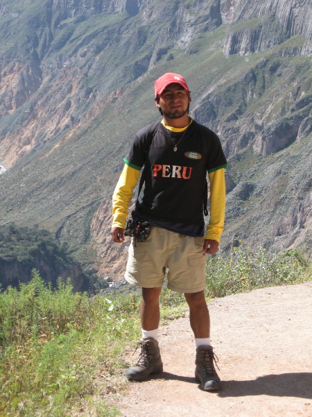 Upon arrival at Cabanaconde, Jose, one of the other guides, stopped a local kid riding a bicycle across the square and gave him 200 soles (about $70). Jose then introduced the biker, Nestor, to us and told us he would be our guide. Nestor led us to a local caf where we had lunch. He returned shortly after changing into his guiding clothes and spoke to us in good English.