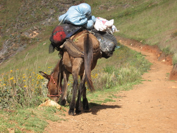 The third day, we started back and got almost all the distance to Cachora. Peter & I decided to not pay a tip to Rafael, but we paid the equivalent of one days pay to both Washington, the cook, and the arrieo. Washington, was upset that the tip was not more, but the arrieo seemed very happy.