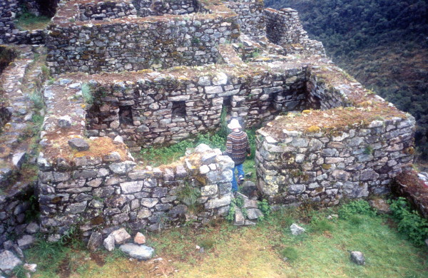 The next day was good weather until 1/2 hour from the Sayamarca ruins, when it started raining. We camped at the Sayamarca ruins, and tried to dry out.