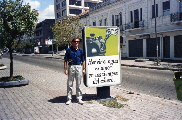 Photo: Rick and sign warning of cholera