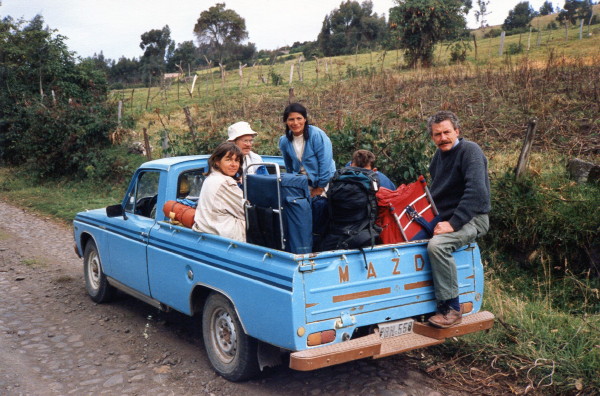 July 12, 1992 We joined up with Piet, a Netherlands man living in Quito, for a hike to a highland rainforest in Carchi. There were 10 people total. Because we had larger backpacks, Rick and I carried much of the food. Part of what I had was cooked rice and spaghetti sauce. We took a bus to El Angel.