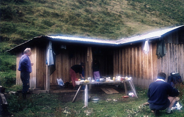 The next morning we all took a pickup to the paramor. From there we hiked down into the rainforest, the land that is owned by Piet. It rained much of the time we were in the rainforest, and the trail (??) had to be hacked out by Piet with a machete. When we emerged from the rainforest late in the day, the rain stopped. We stayed in a hut that belonged to Piet.