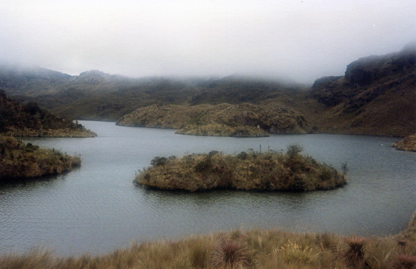July 18, 1992 Rick and I took bus to start of a hike near Chimborazo. However I we hiked little and saw even less as there was much rain and fog. July 22, 1992 After having spent a day touring Cuenca, we went to Las Cajas and hiked south into the park on a reasonable nice day. However, late in the day it got foggy and started to rain. We spent the next two days getting out of the fog covered park.