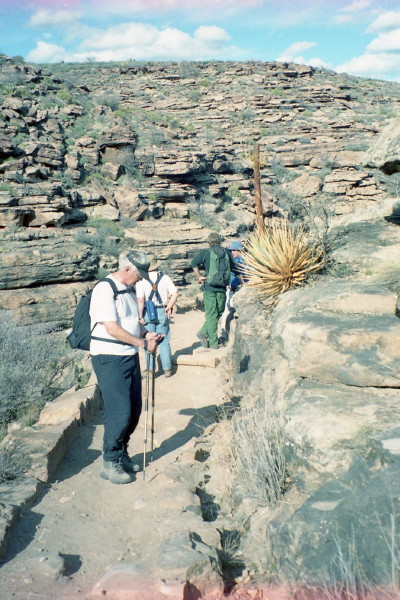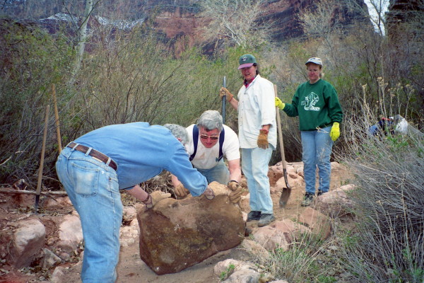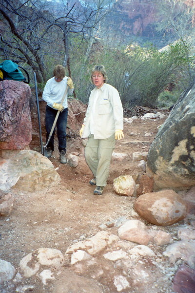 Project description We worked at improving the tread of the trail and resolving some drainage issues. We stayed at a bunkhouse at Indian Gardens, which was part way down the trail. We had one day off and spent it hiking down to Paradise Ranch. It snowed on the last day, the day we walked back up to the rim.