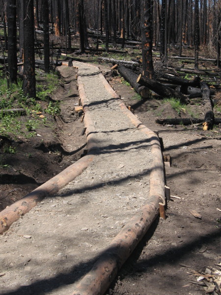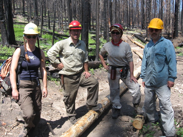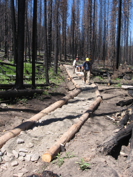 Project description Build turnpike. We walked about 15 miles to get to Schafer Ranger Station the first day and then another 15 miles the next day to reach the campsite. Worksite was in the midst of a recent fire and about a 4 mile walk from the campsite.