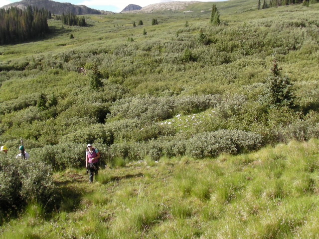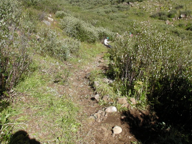 Project description Cutting out overgrown willows on Continental Divide Trail. We walked about 10 miles to get to Campsite. Worksite was nearby.